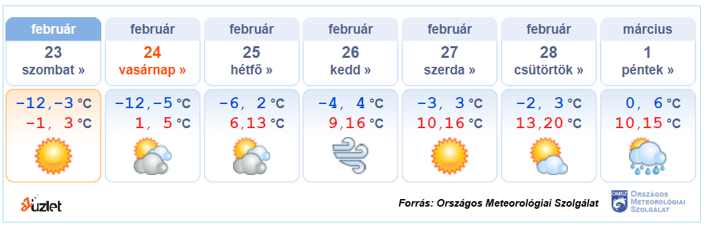 A legmagasabb nappali hőmérséklet vasárnap 1 és 5 fok között valószínű.