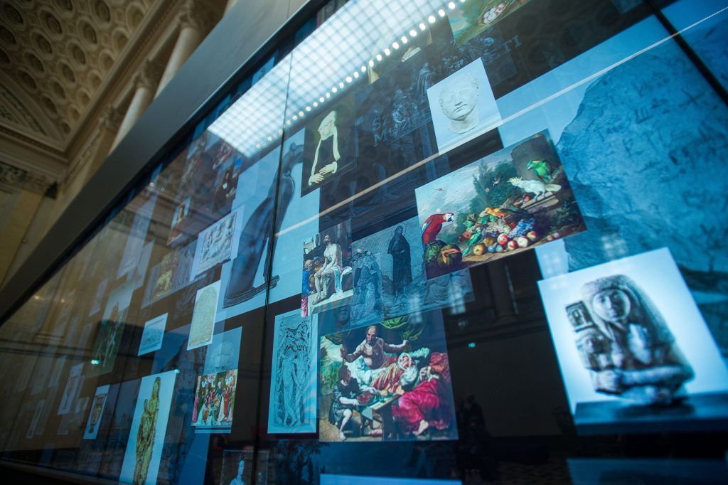 Az LCD-fal ezért csak a gyűjtemény olyan darabjait mutatja be, amelyek jelenleg is részei az állandó tárlatnak: az egyiptomi Óbirodalom korától a 18. századig mintegy 300 festményt, szobrot és egyéb műalkotást