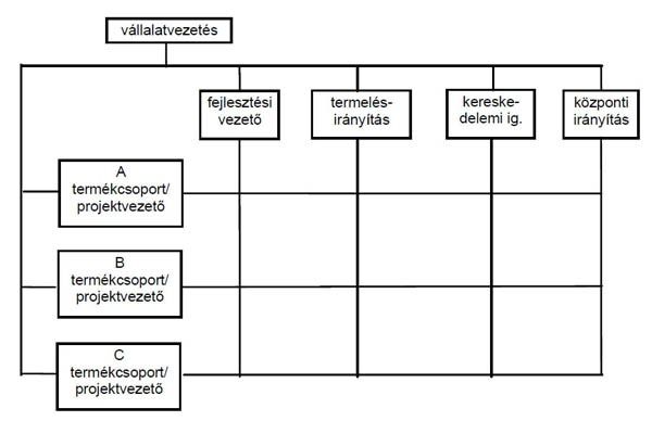 Ez, a csak kis mértékben hierarchikus struktúra nagyszerűen alkalmas arra, hogy minden projektre a megfelelő csapat álljon össze, s minél hatékonyabb legyen a cég szakembereinek kihasználtsága. Ezen a szervezeti formán belül még több variáció is létezik, például a mátrix formáció, amikor a projekt-tagok két „urat” szolgálnak: a projektvezetőt és a szakmai vezetőt. (Érdemes megjegyezni, hogy a kettős irányításból meglehetősen gyakran származnak konfliktusok a szervezeten belül.)
