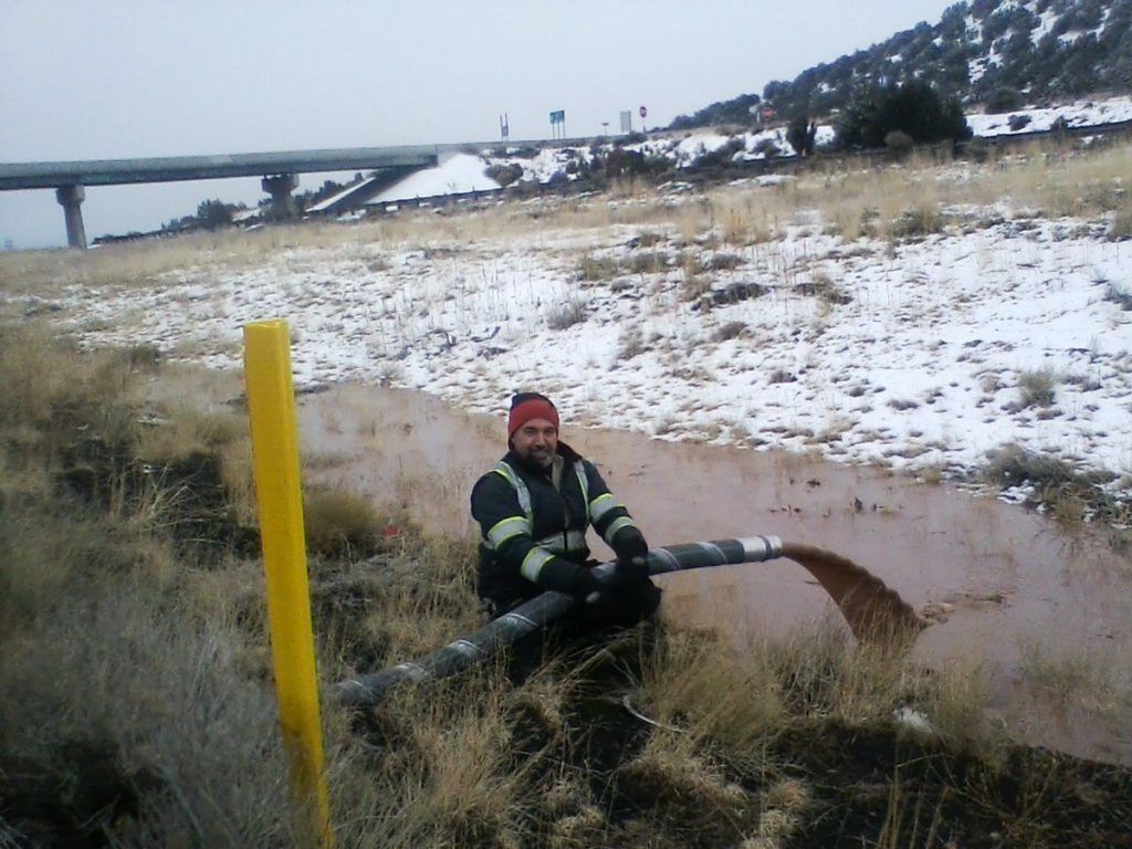 Az Arizonai Közbiztonsági Hivatal (ADPS) által közreadott képen egy munkás folyékony csokoládét szivattyúz a Flagstaff közelében 2019. január 14-én történt balesetet követően, amely során több mint 150 ezer liter folyékony csokoládé ömlött az autópályára egy sérült tartálykocsiból.