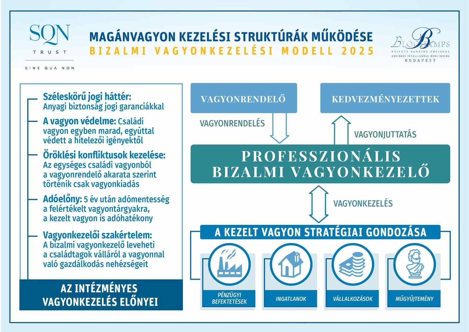 A három kockázat – nemzetközi bizonytalanság, adópolitikai nyomás és generációs váltás – együtt olyan új kihívást teremt, amelyre a hagyományos, ad hoc megoldások már nem adnak választ. A trust mintáján alapuló bizalmi vagyonkezelés éppen ezekre a problémákra nyújt jogilag rendezett, hosszú távon is fenntartható keretet, amely egyszerre biztosítja a vagyon védelmét, a működés folyamatosságát és az adózási átláthatóságot – immár itthon is, nemzetközileg is elismert színvonalon.