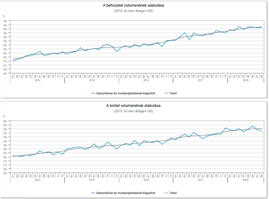 Az augusztusi külkereskedelmi aktívum 20 millió euróval kevesebb az október 9-én kiadott első becslésben közölt értéknél, amikor 0,1 százalékponttal nagyobb exportnövekedést és ugyanannyival kisebb importemelkedést jelzett a KSH.