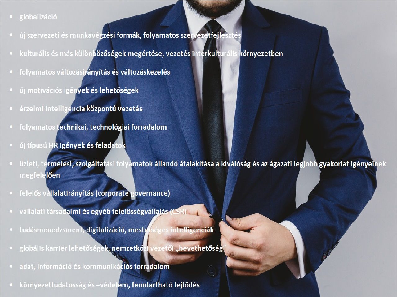 Melyek a legfontosabb kihívások, amelyekkel a 21-dik század első két évtizedének vége felé a vezetőknek szembe kell nézniük? Természetesen minden menedzser órákon át tudná sorolni, hogy újabban mi mindenre kell odafigyelnie, mi mindennel kell foglalkoznia. Az alábbiakban valóban csak a legfontosabb kihívás-csoportokat soroljuk: